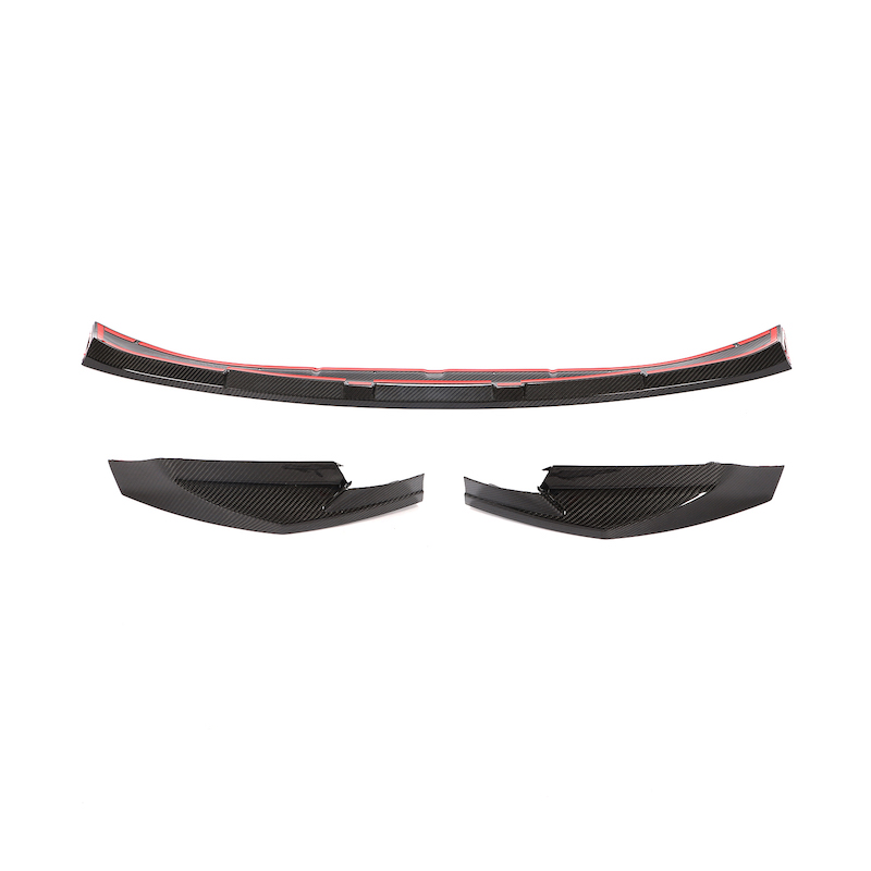 Agresywny splitter wykonany z najwyższej jakości carbonu, fenomenalnie wpasowuje się w sportową sylwetkę samochodu, dodając optycznego obniżenia przedniej części pojazdu. Pomimo fenomenalnych walorów wizualnych, dzięki odświeżonej technologii montażowej, splitter wciąż pozwala na komfortową jazdę w warunkach miejskich.